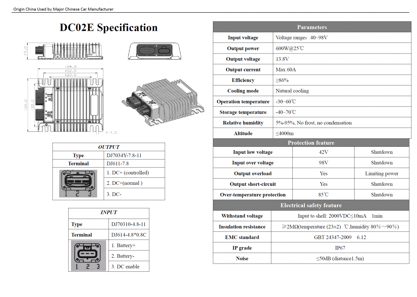 DC-02E, yüksek voltajlı batarya sistemlerinden 13.8V elde edilmesi gereken uygulamalarda kullanılır.